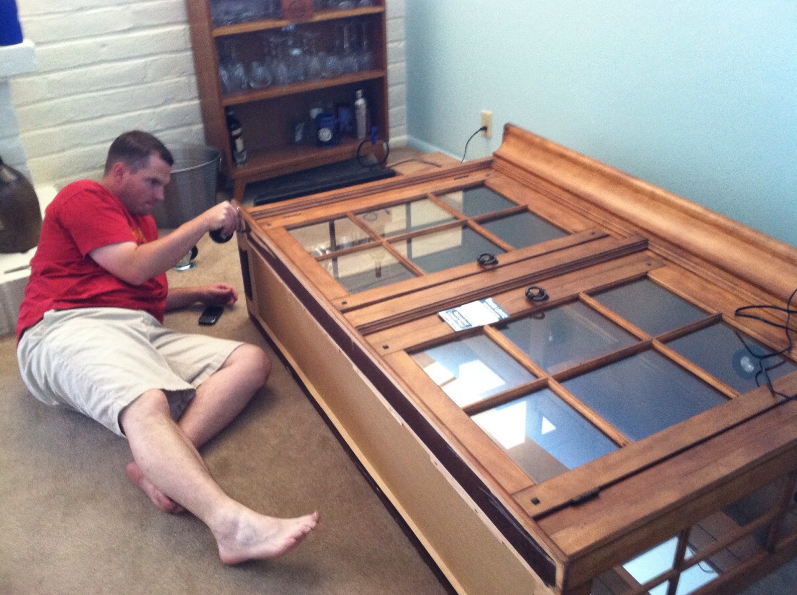 Since it was the top of a china cabinet, the "top" of the cabinet was unfinished. We would need to make a bar top. No problem! We're a 4-H family! We LOVE projects!