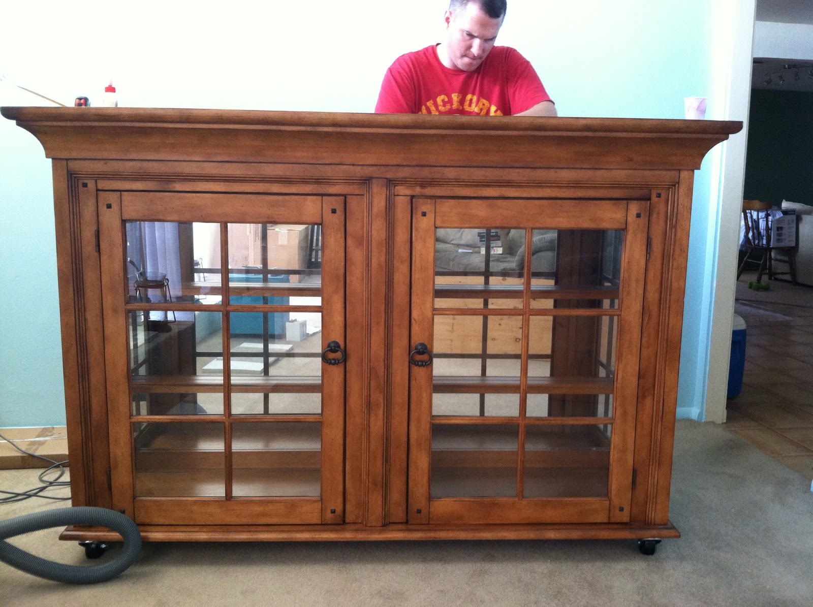 It was PERFECT to be made into a bar/drink cabinet. Per Pinspiration, I had wanted to remake an armoire into a bar - and this seemed...better...and available...and cheaper than the armoires being sold at the Habistore or Tucson's plethora of thrift shops. :)