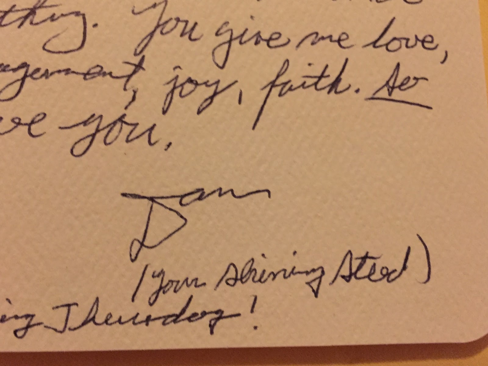 We referred to each other by our names frequently. The picture is of the envelope from my 5th anniversary card. Till the very end. Always.