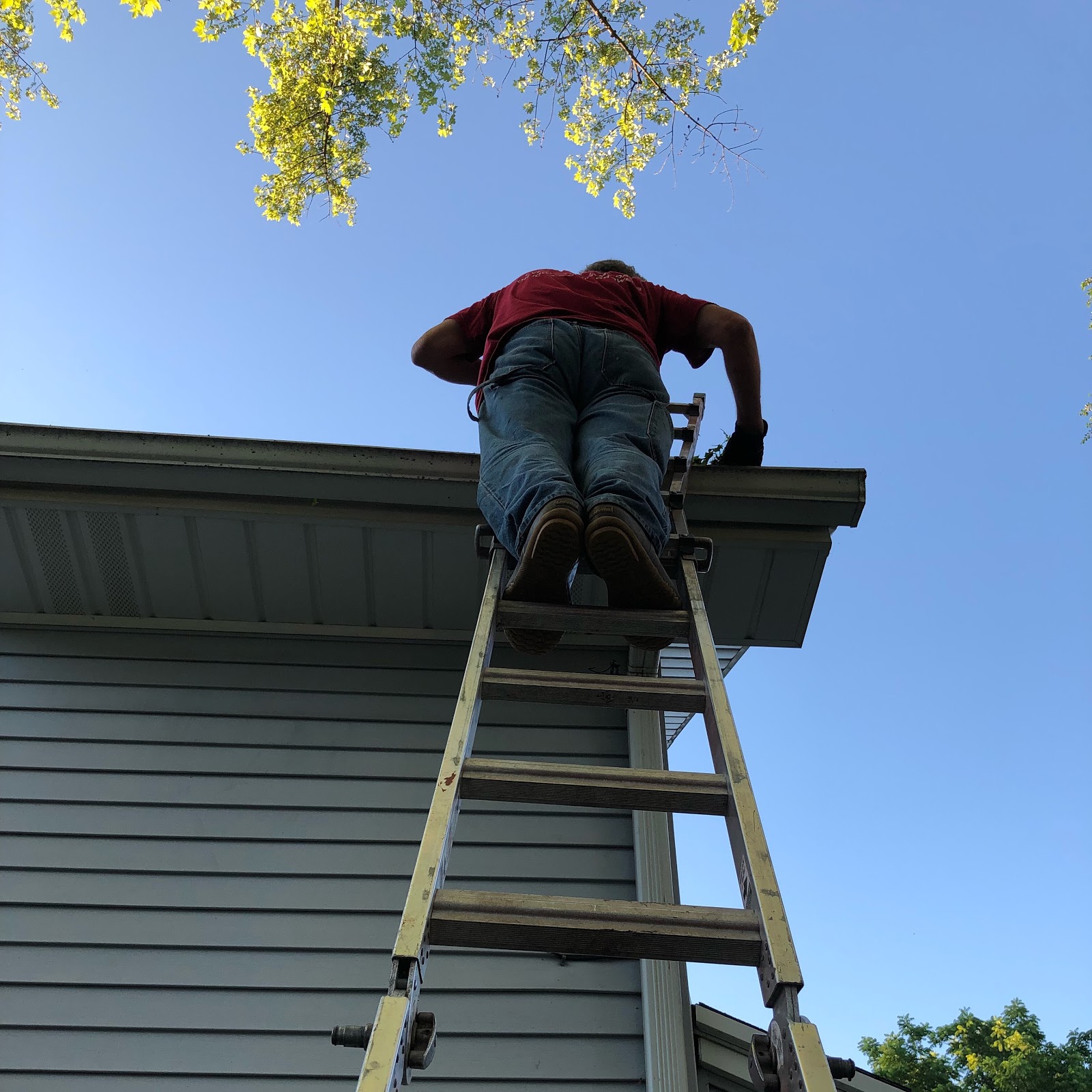 Sunday: he built shelves in my little storage shed and then cleaned out my gutters